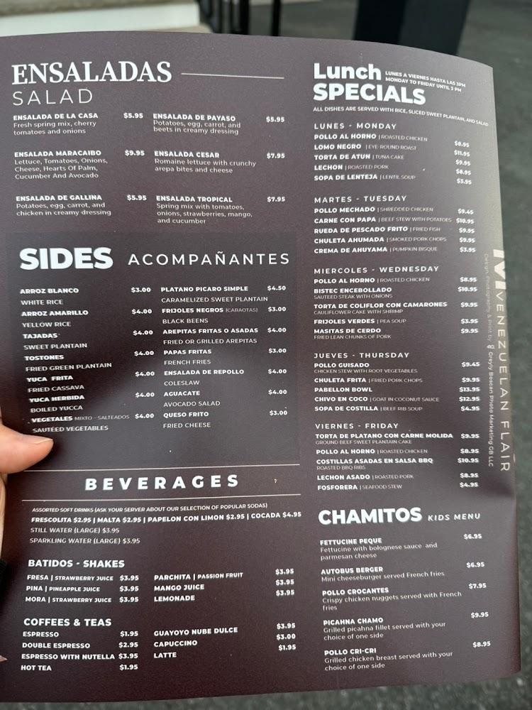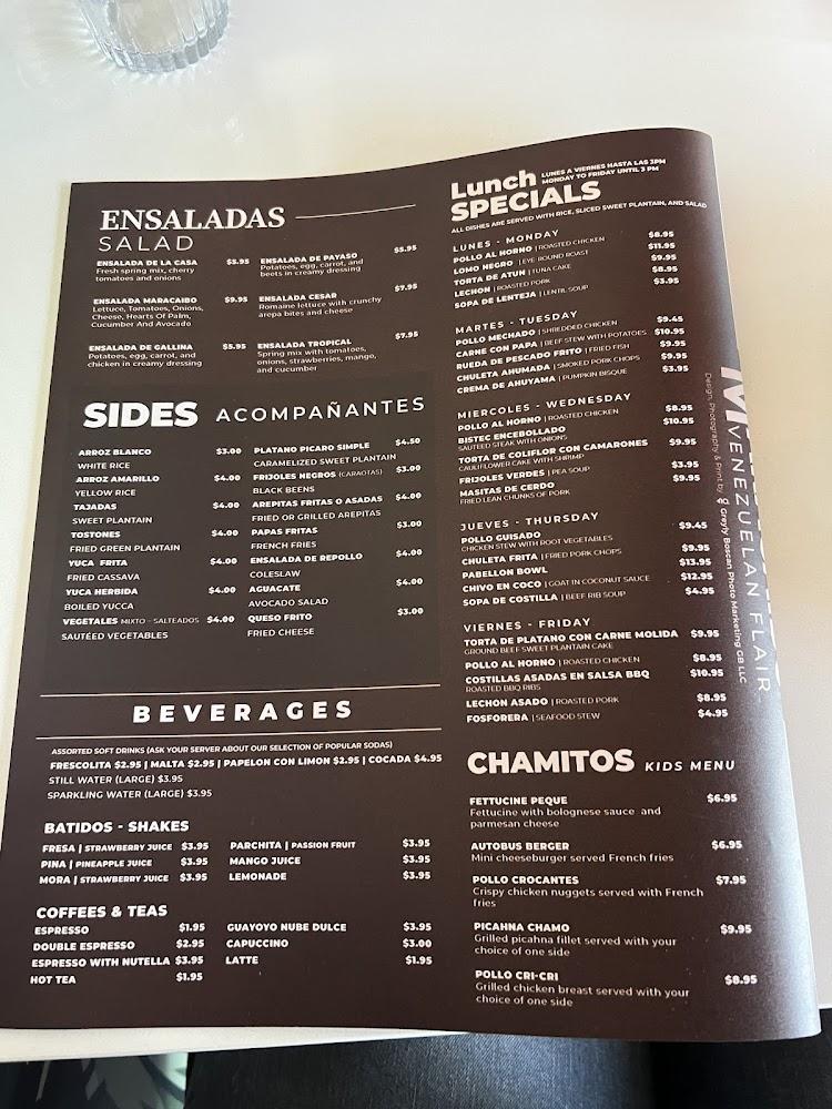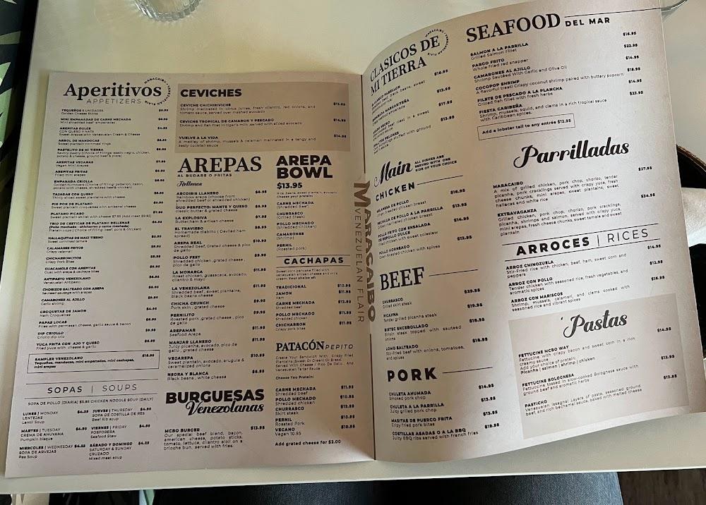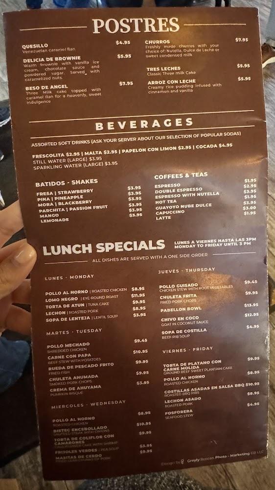 Maracaibo's menu features an array of Venezuelan favorites. Highlights include arepas stuffed with various fillings and cachapas served with cheese. Diners can explore flavors with the Venezuelan Sampler, offering multiple tastes on one plate. The classic pabellón dish showcases shredded beef, rice, and black beans for a satisfying meal. There's also a vegetarian menu for those seeking plant-based options. Prices range around $13.75, making it accessible for all. Desserts are not to be overlooked, especially the flan, known for its exceptional flavor.